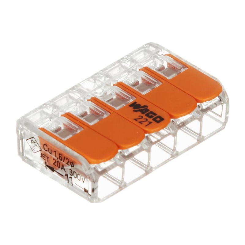 Клемма с рычажком WAGO 221-415 без пасты, 5 проводов 0,14-4 мм2 (6 шт.)