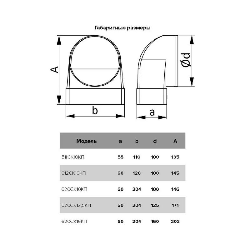 Соединительное колено Era 620СК12,5КП, 204х60 мм d=125 мм