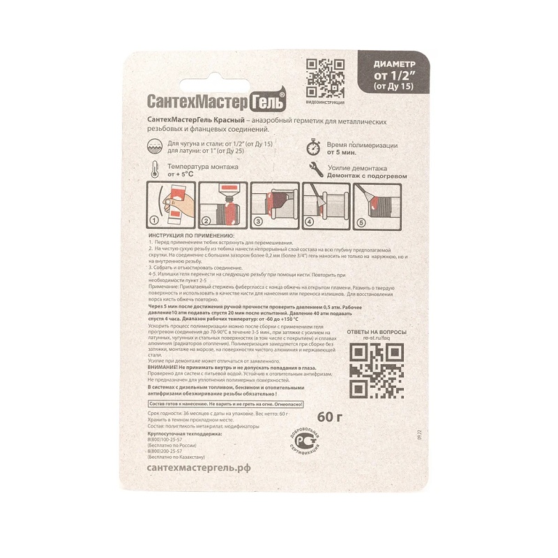 Анаэробный клей-герметик Сантехмастергель до 3", красный, 60гр