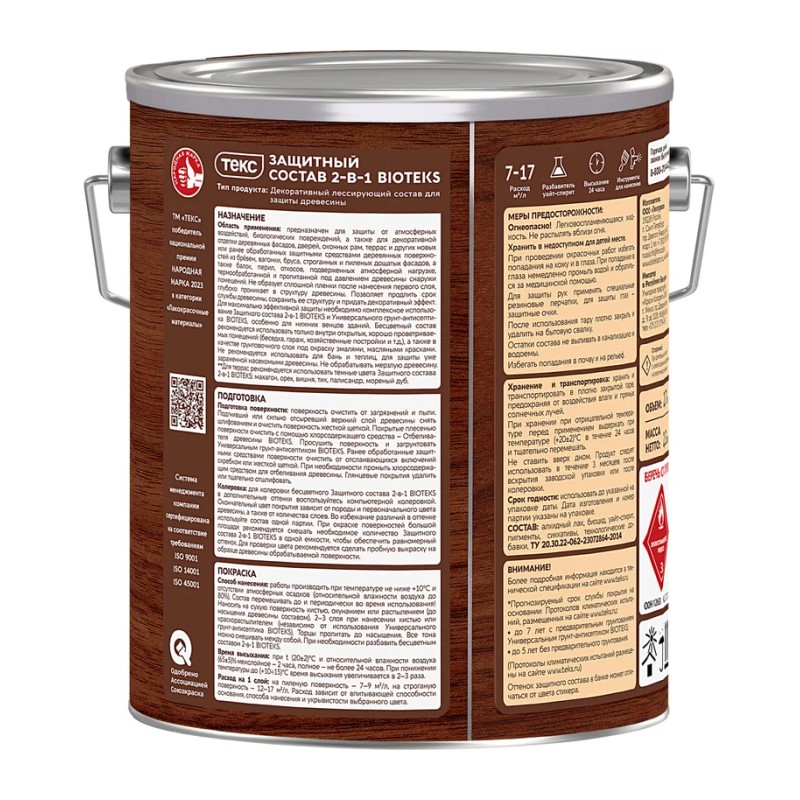 В строительном магазине Сатурн можно купить товар "Антисептик Текс Bioteks состав 2в1 палисандр (2,7 л)" по цене от 1568 руб с доставкой за 2 часа по Барнаулу или оформить самовывоз.