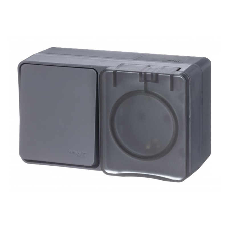 Блок БКВР с/у Atlasdesign Profi ATN544070, 1 клавиша + 1 гнездо с/з, з/ш и крышкой, IP54, антрацит