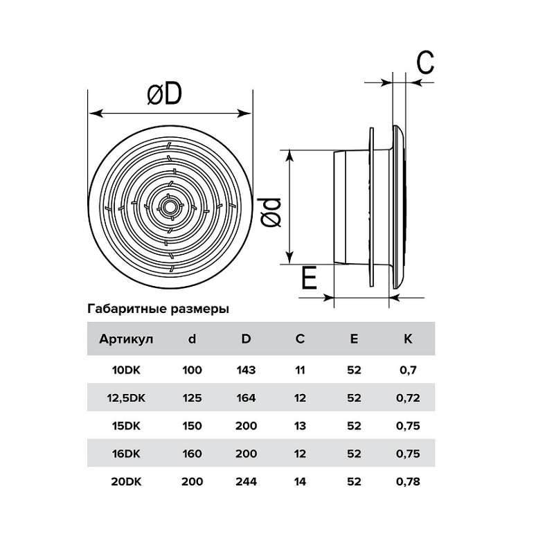 Диффузор потолочный Era 10DK, d=100 мм, белый