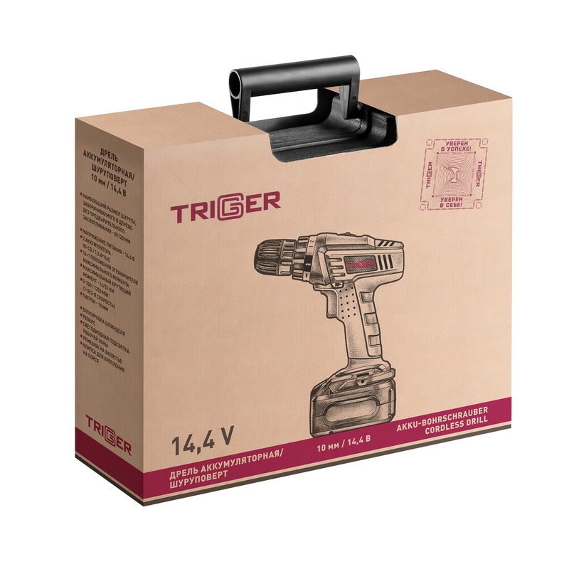 Дрель-шуруповерт Trigger 20002, 2 аккумулятора (1,5Ач), 10 мм, 14,4V, кейс