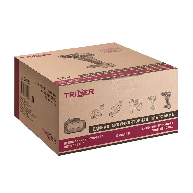 В строительном магазине Сатурн можно купить товар "Дрель-шуруповерт Trigger 20122, бесщеточная, 18V, 13 мм, 58 Нм, без аккумулятора и зарядного устройства" по цене от 5258 руб с доставкой за 2 часа по Барнаулу или оформить самовывоз.