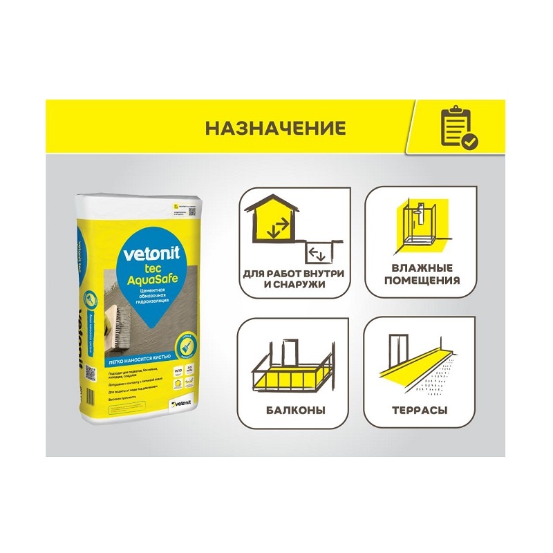 Гидроизоляция жесткая обмазочная Vetonit Weber.Tec AquaSafe, 20 кг