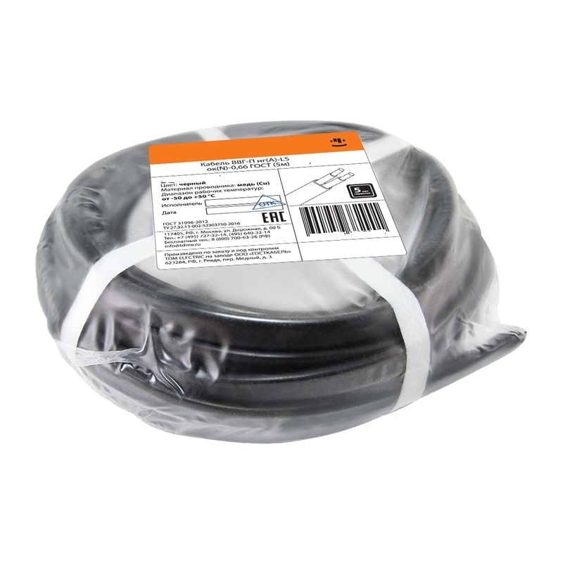 Кабель ВВГ-Пнг(А)-LS 2х2,5мм2, черный (бухта-5 п.м.) ГОСТ 31996-2012