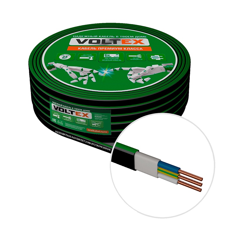 Кабель ВВГ-Пнг(А) Премиум 2х2,5 мм2, ГОСТ+, черный, бухта-20 п.м.