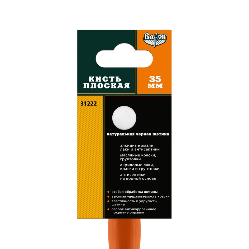 Кисть плоская ВАРЯГ 31222 черная щетина 35 мм