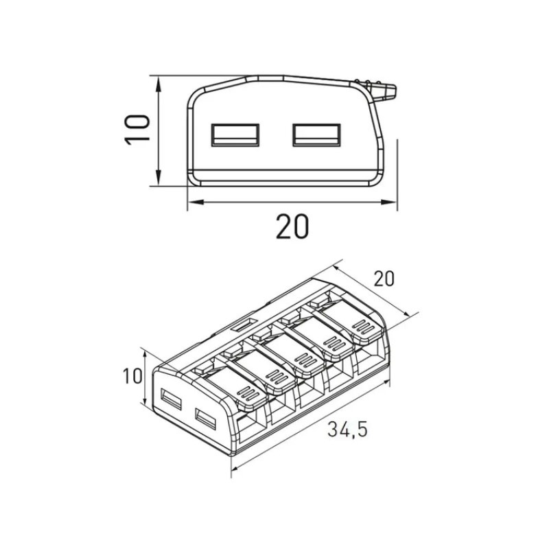 Клемма с рычажком 221-415 без пасты, 5 проводов 0,2-4 мм2 (20 шт.)