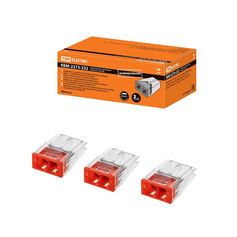 Клемма 2273-232 с пастой, 2 провода 1,0-2,5 мм2 (250 шт.)