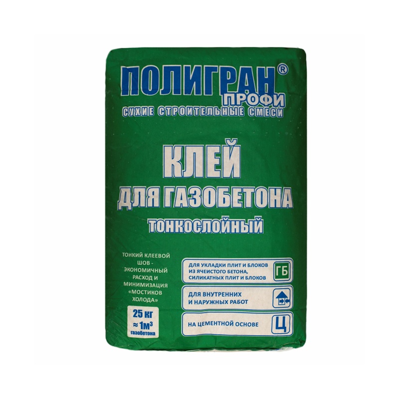 Клей для газобетона Полигран Профи, 25 кг