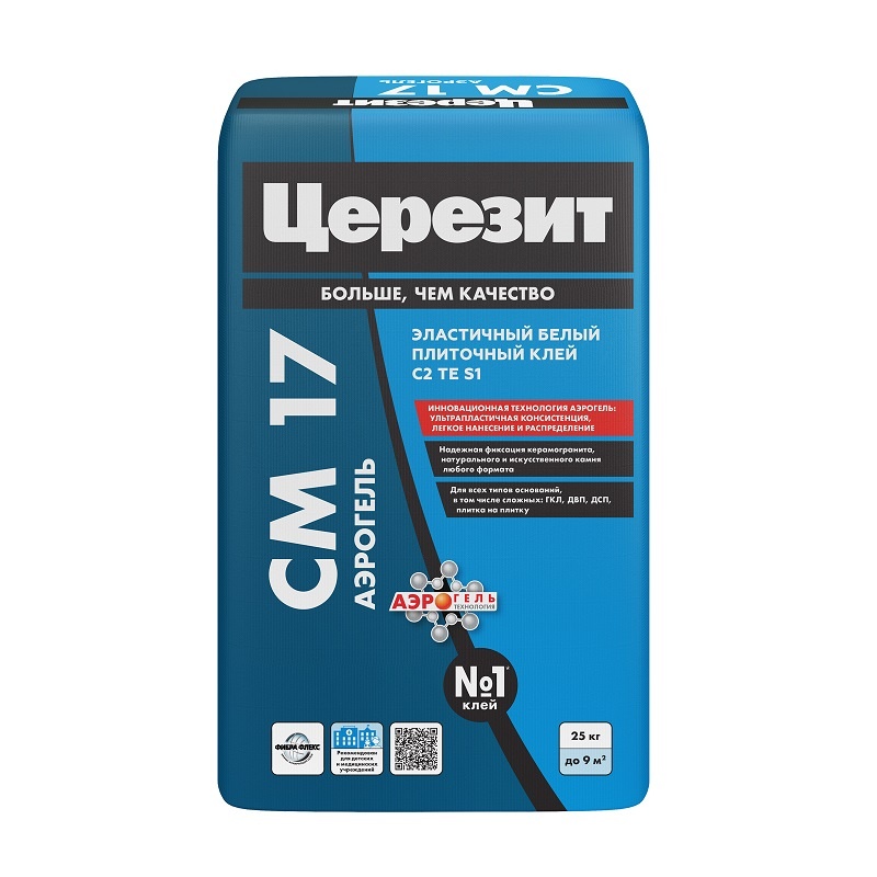 CM 17 Аэрогель - белый эластичный клей с армирующими волокнами для любых видов плитки. Клей СM 17 используется для крепления плиток из всех видов природного камня — мрамора, светлого известняка, травертина, гранита, просвечивающих пород камня и т.д., плиток из терракоты, клинкера и керамогранита, любого размера и формата, в т.ч. свыше 1×1 м, а также стеклянной (кроме зеркальной) мозаики, на стенах и полах внутри и снаружи зданий.