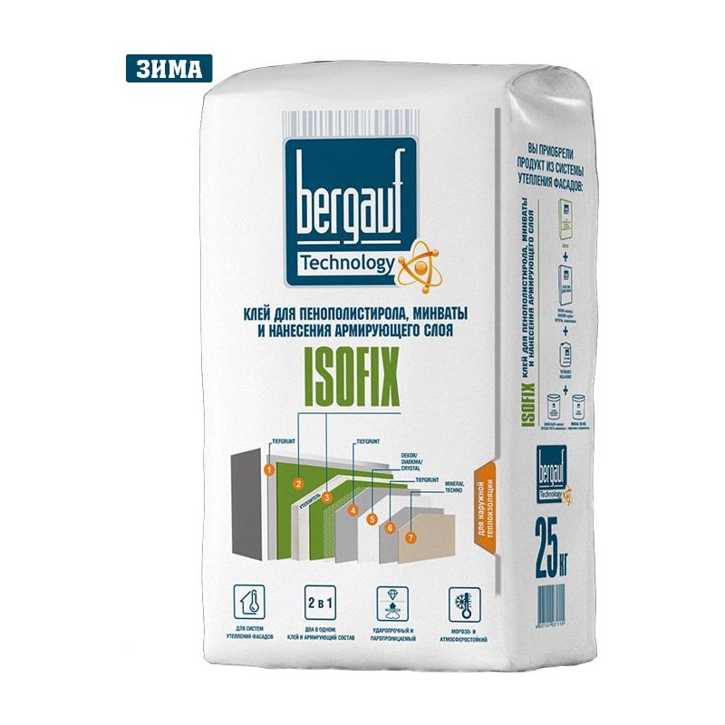 Клей для пенополистирола, минваты Bergauf Isofix зимний, 25 кг