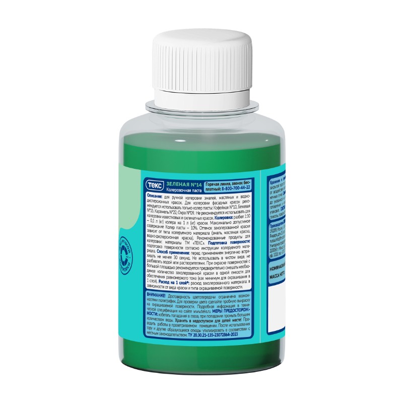 Колер для краски Текс универсальный зелёная (0,1 л)