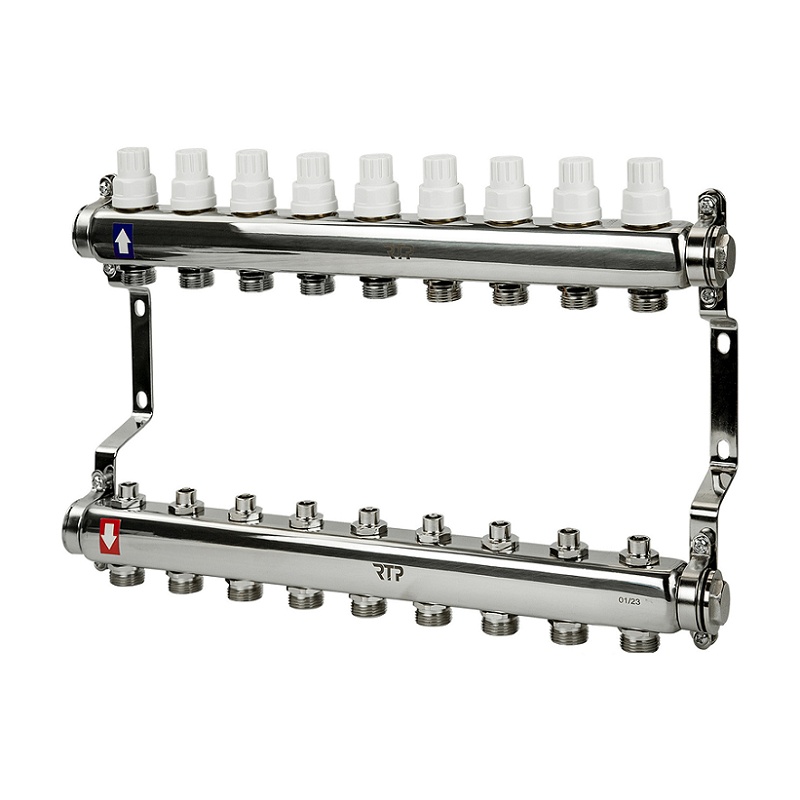 Группа коллекторная RTP 1"х3/4", 9 выходов, 95 гр, 10 бар