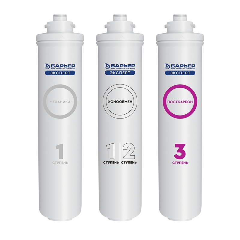 Данная комплектация включает: Барьер Эксперт Механика, Барьер Эксперт Ионообмен, Барьер Эксперт ПостКарбон.
