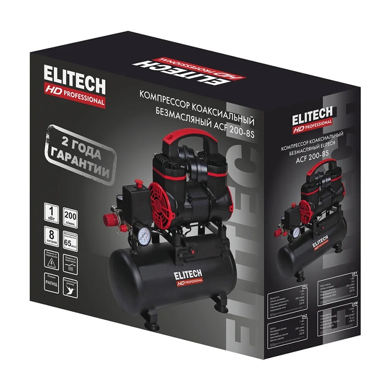 Компрессор Elitech АCF 200-8S 200 л/мин, 1 кВт, 8 бар, 8 л, безмасляный