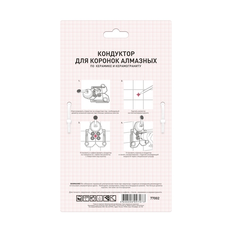 В строительном магазине Сатурн можно купить товар "Кондуктор для корон. алм. по керам. и керамогр. Trigger 77002 14-82мм" по цене от 2329 руб с доставкой за 2 часа по Барнаулу или оформить самовывоз.