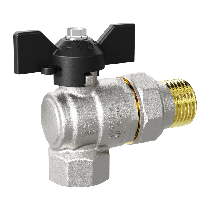 Кран шаровый PN40, 1/2" В-Н, угловой, со сгоном, бабочка