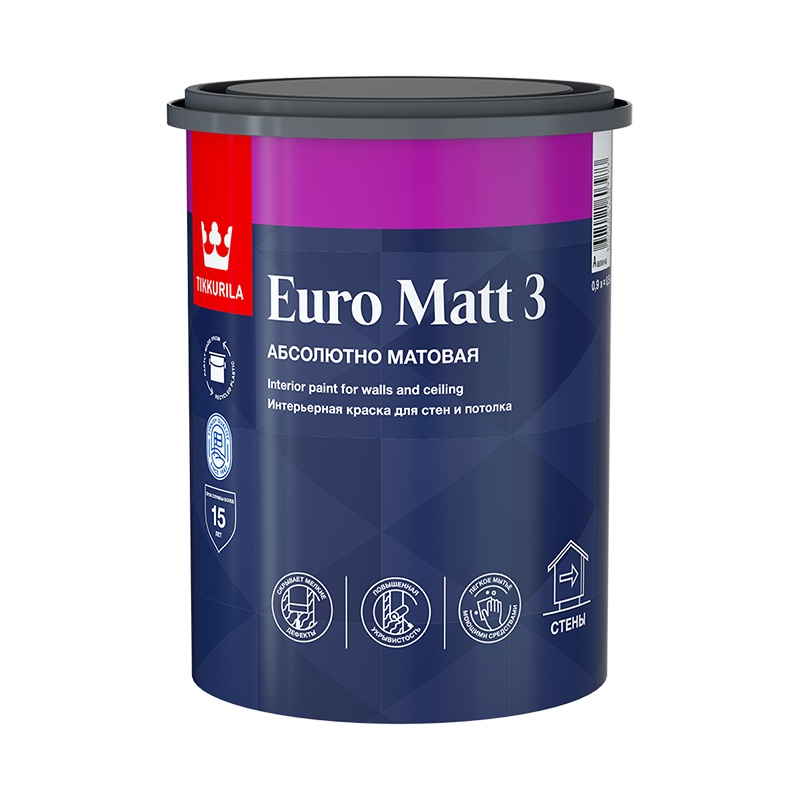 Краска интерьерная Tikkurila/Tikkivala Euro Matt 3 основа А глубоко матовая (0,9 л)