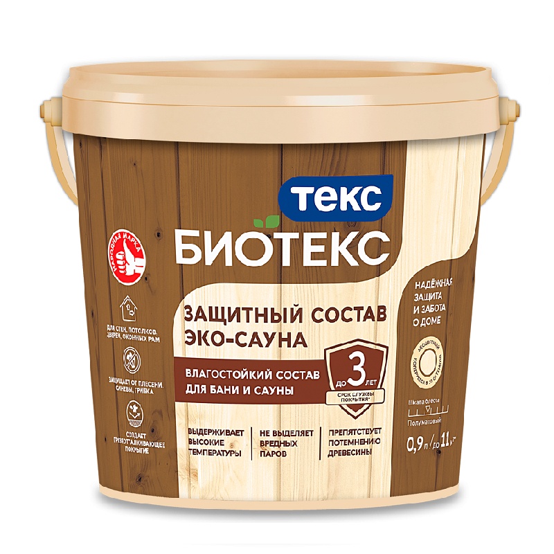 Защитный состав Текс Эко-Сауна Биотекс, полуматовый (0,9 л)
