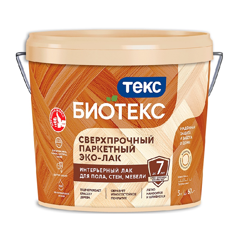 Эко-Лак водоразбавляемый паркетный Текс Биотекс, полуматовый (5 л) в Барнауле