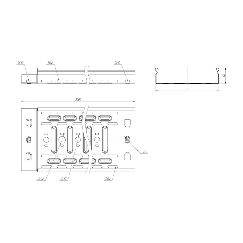 Лоток листовой перфорированный, замковый EKF 100х50х0,55 мм, L=3 м