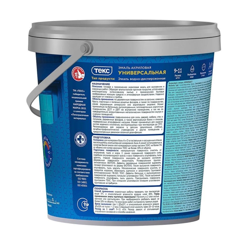 Эмаль универсальная Текс акриловая белая матовая (0,9 л)