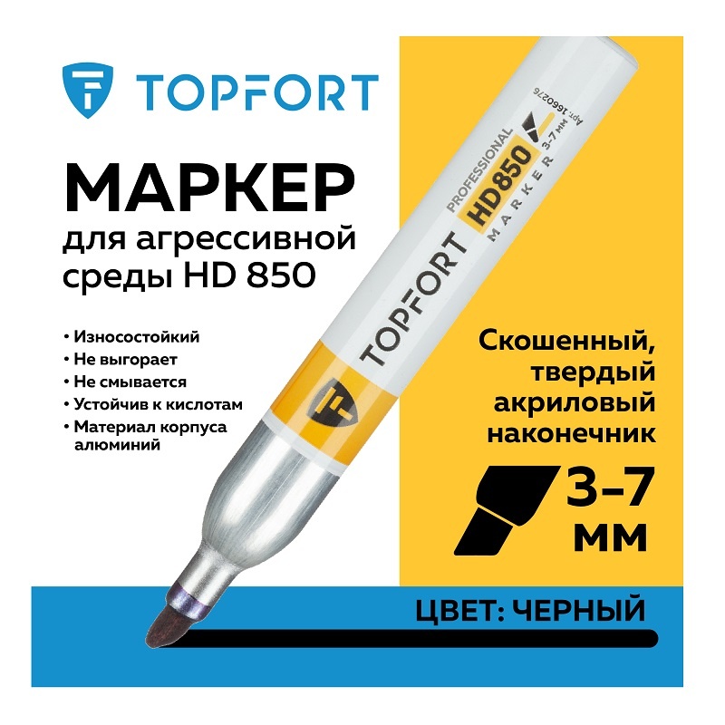 Маркер для агрессивной среды Topfort HD 850 черный 3-7 мм, скош. наконечник в Барнауле