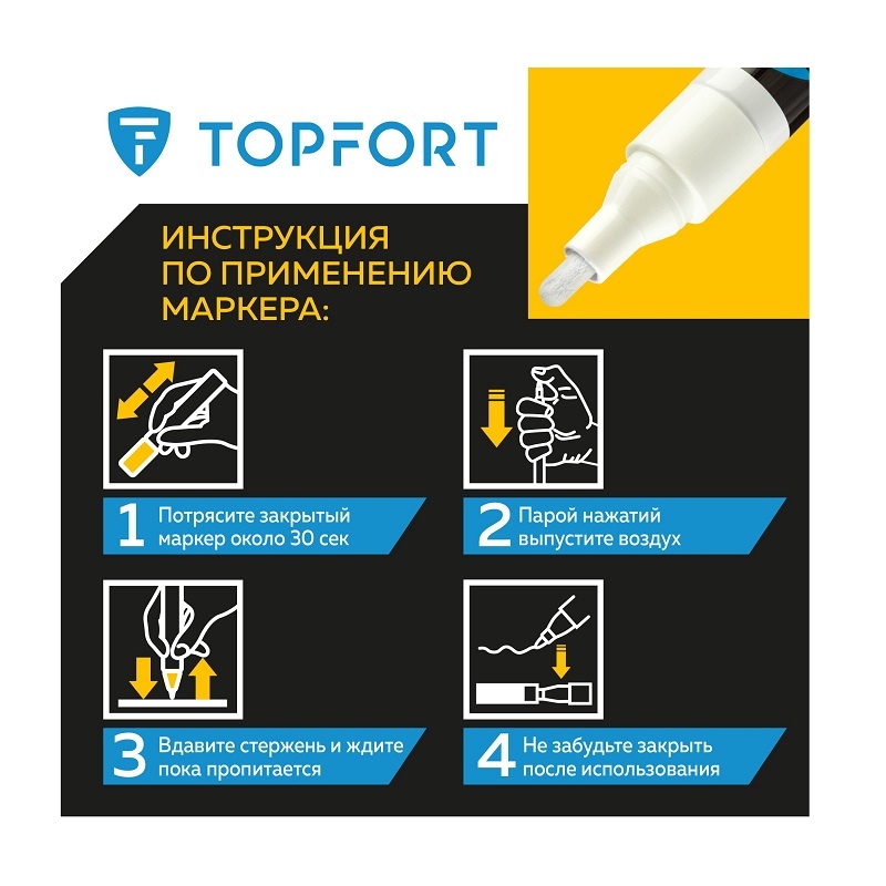 Предостережения: плотно закрывайте колпачок после применения, держать маркер вдали от источников тепла и воспламенения.