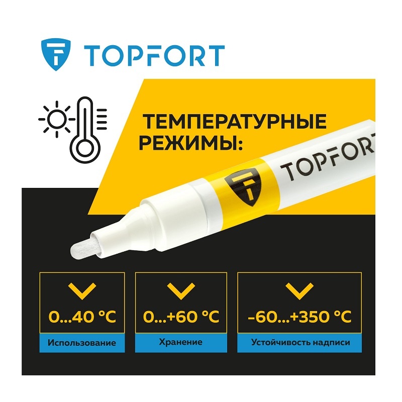 - Температурный режим: использования: от 0 до +40 °С; хранения: от 0 до +60 °С; устойчивость надписи: от -60 до +350 °С.