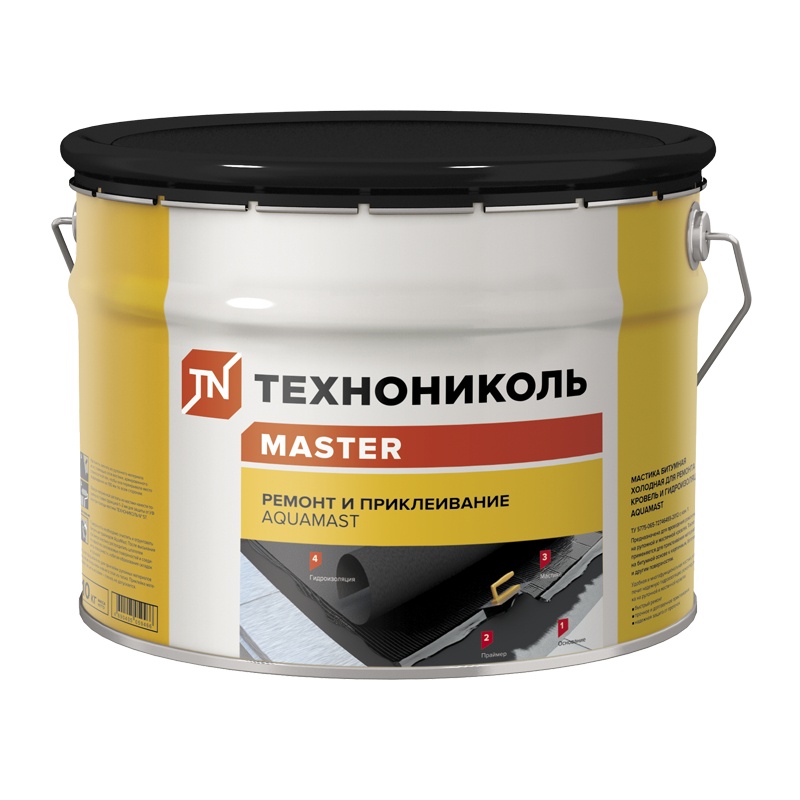 Мастика битумная АкваМаст гидроизоляционная для ремонта и приклеивания, 10 кг
