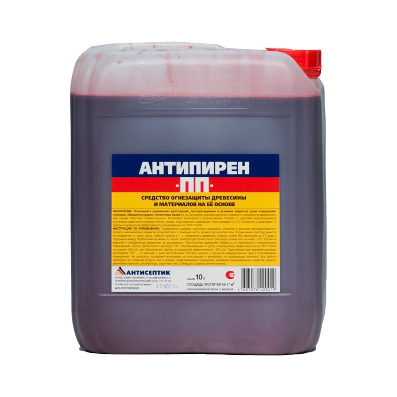Объекты применения: стропила, обрешётка кровли и т.п. Антипирен "ПП" относится к средствам I, II группы огнезащитной эффективности для древесины по ГОСТ Р 53292-2009. Устойчив к старению.
