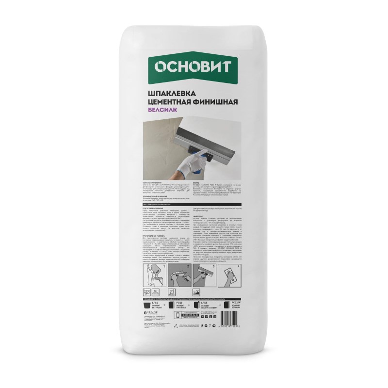 Шпаклевка цементная Основит Белсилк PC32 W (Т-32) финишн. белая, 20 кг