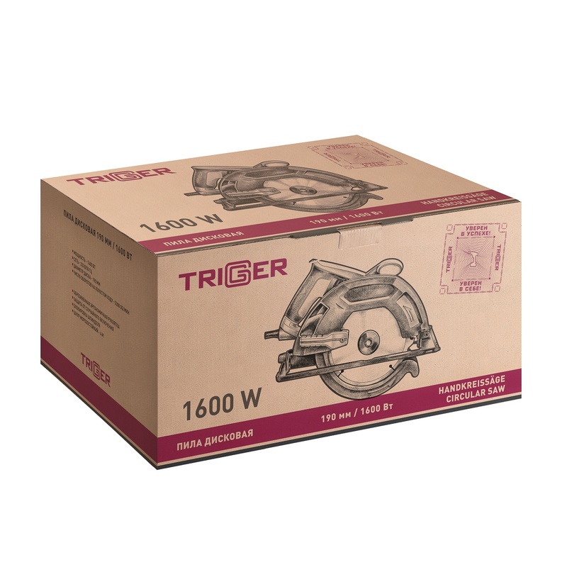 Пила циркулярная сетевая Trigger 20519, 1,6 кВт, d=190 мм, глубина пропила=60 мм