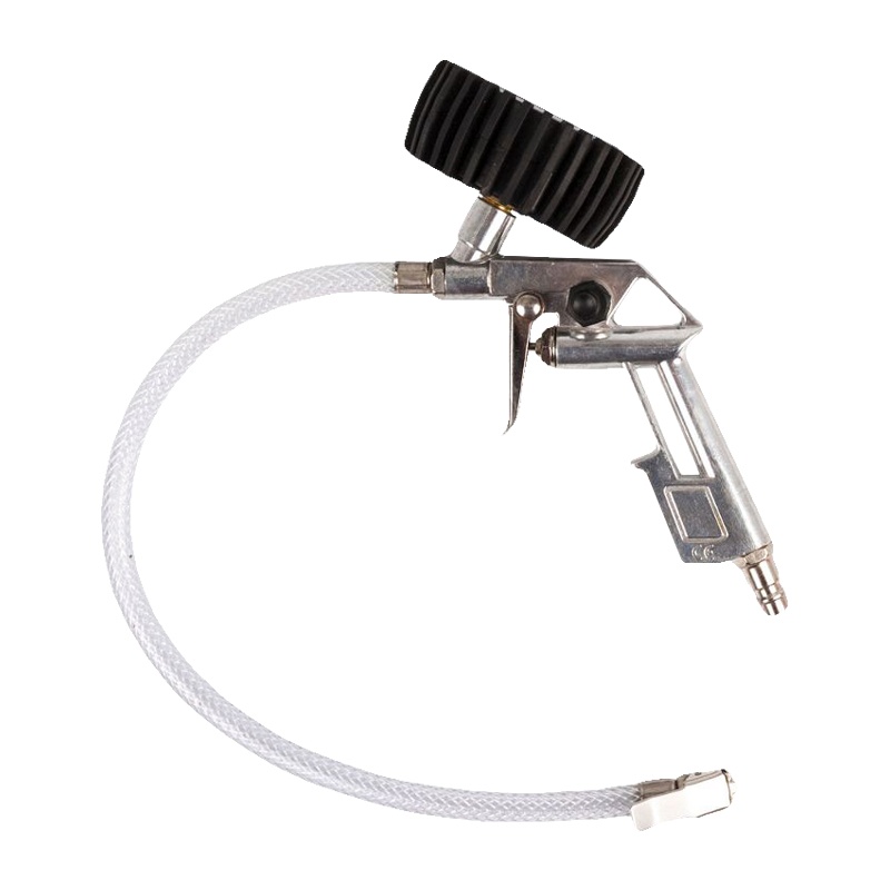 Предназначен для накачки шин и других резиновых емкостей для воздуха. Монометр позволяет в режиме реального времени контролировать уровень остаточного давления в шине. Для удобства работы в местах с ограниченным доступом пистолет укомплектован гибким шлангом.