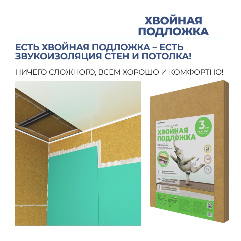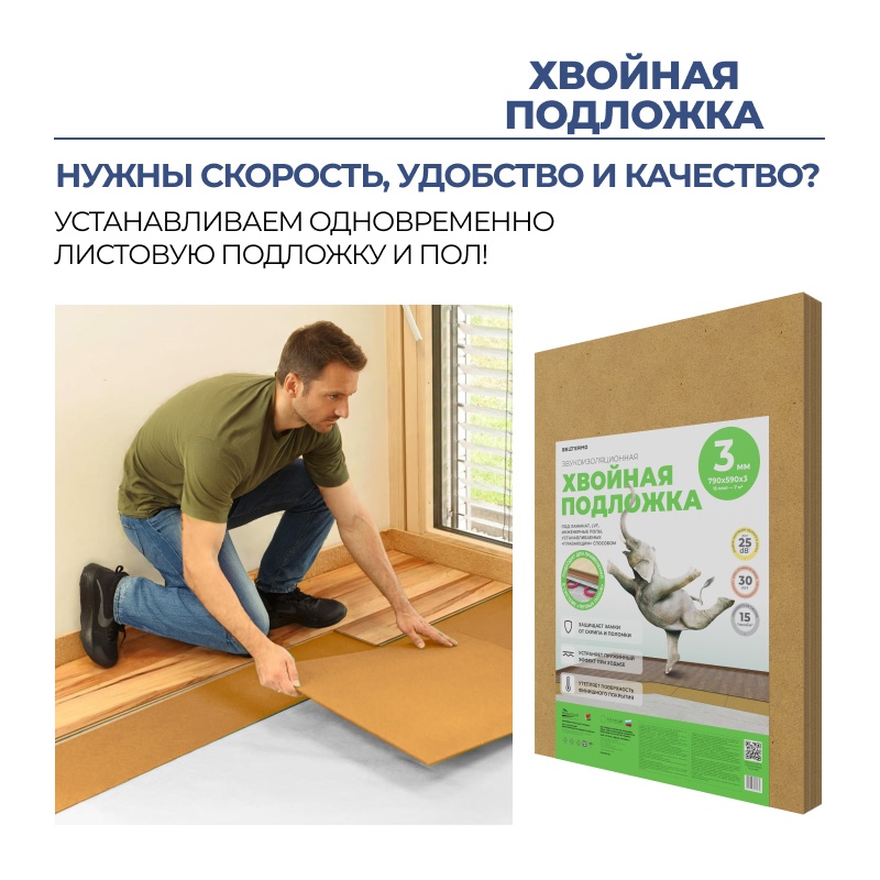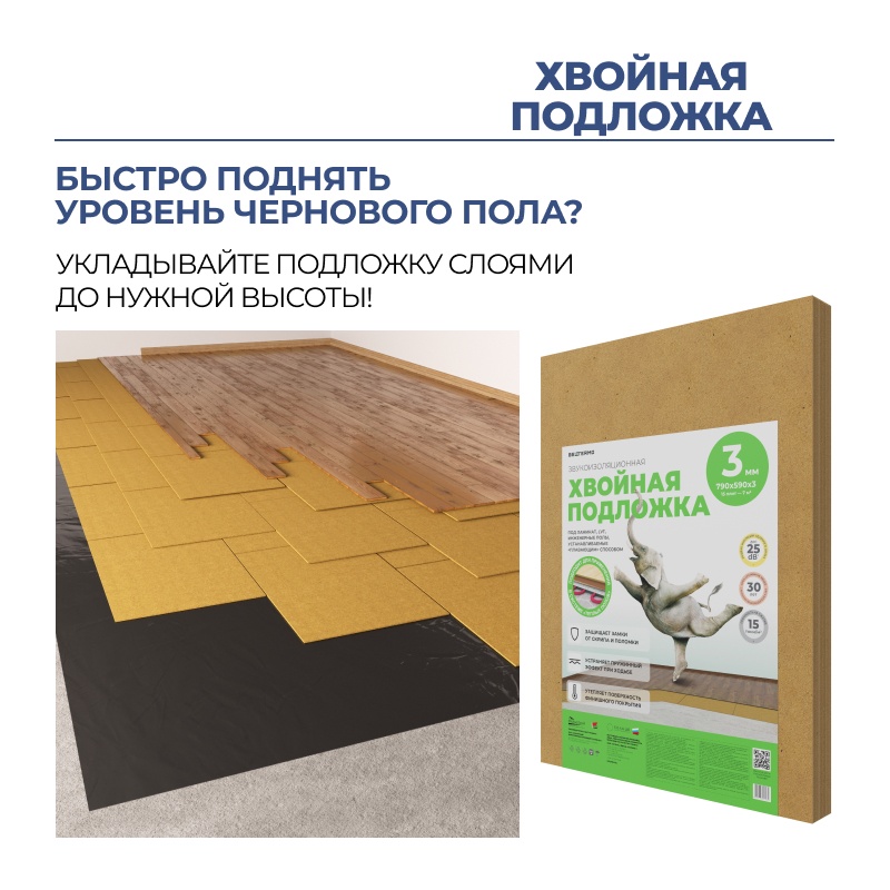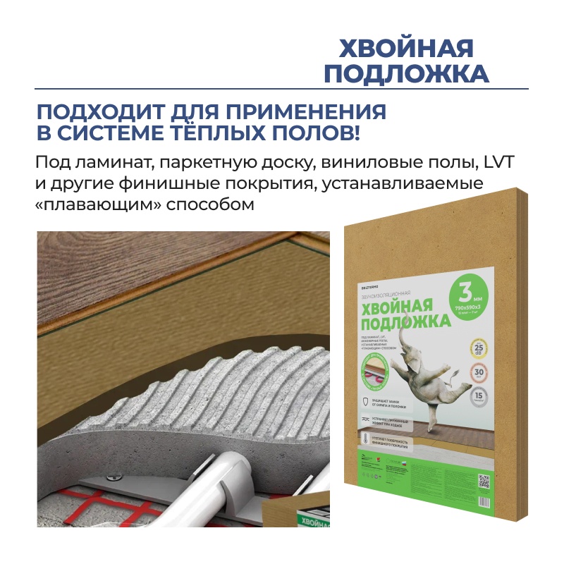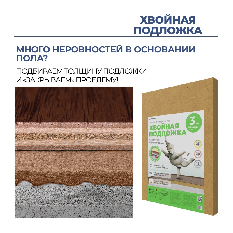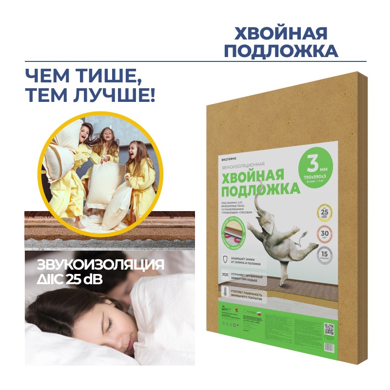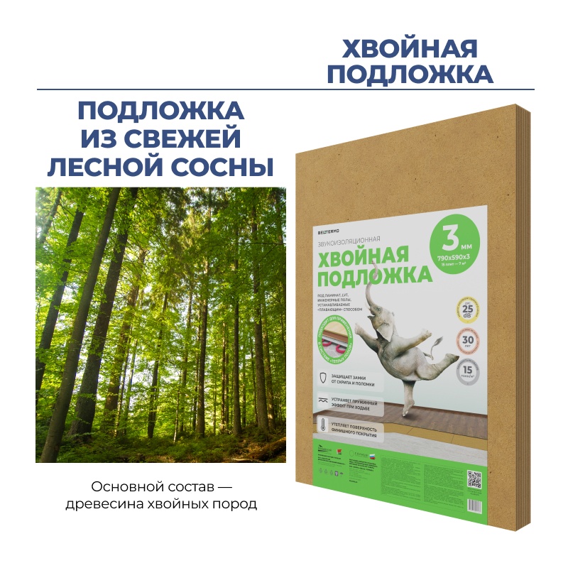 Подложка хвойная Beltermo 790х590х3мм (уп.15 шт) (7 м2)