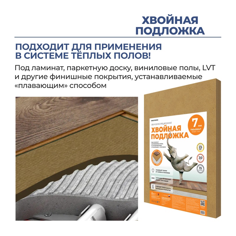 Подложка хвойная Beltermo790х590х7 мм (уп.15 шт) (7 м2)