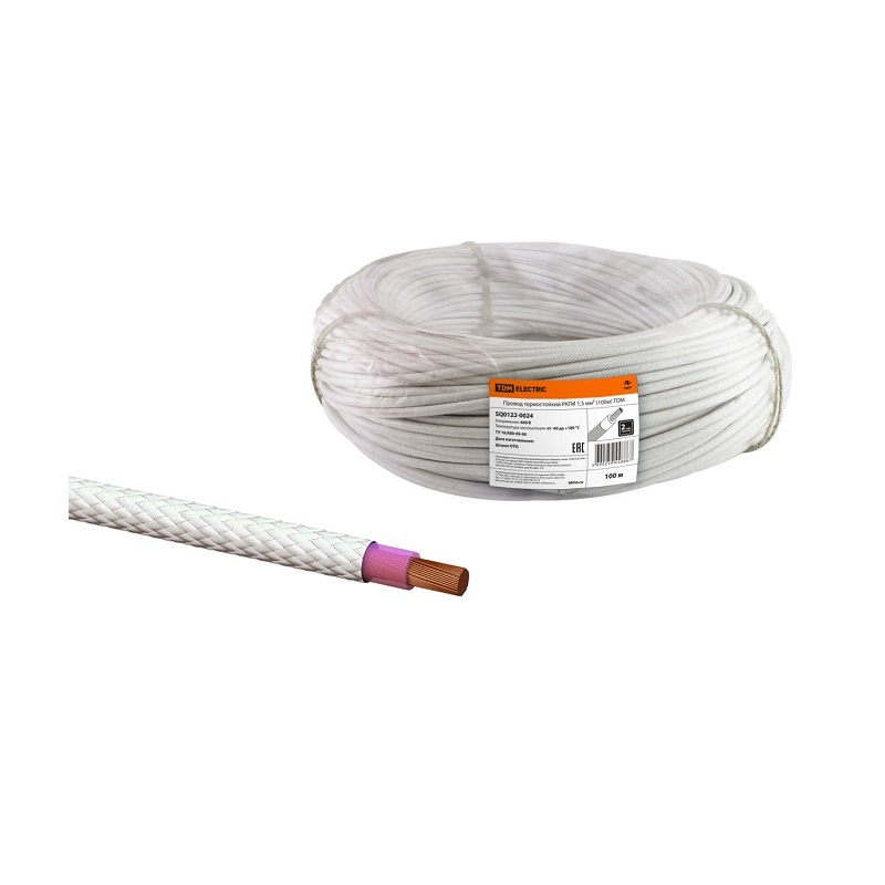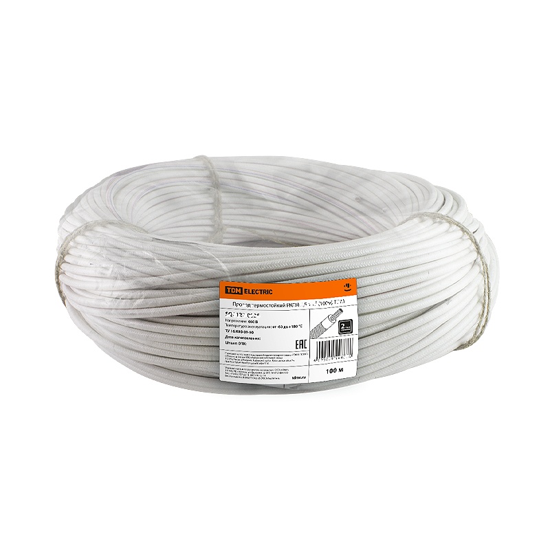 Провод РКГМ 1х1,5мм2, термостойкий, белый (бухта-100 п.м.)