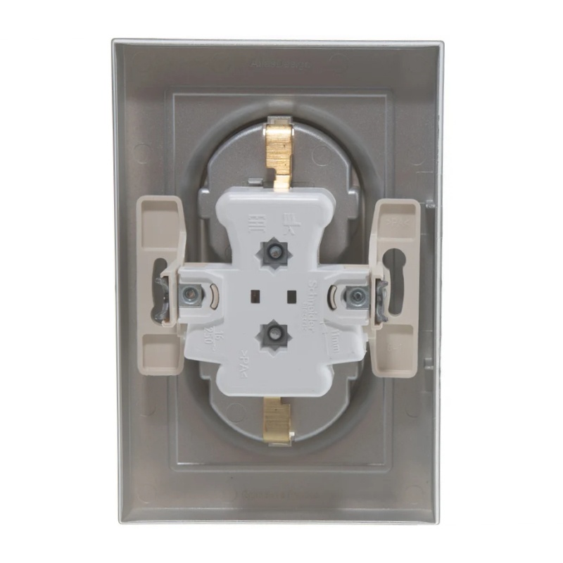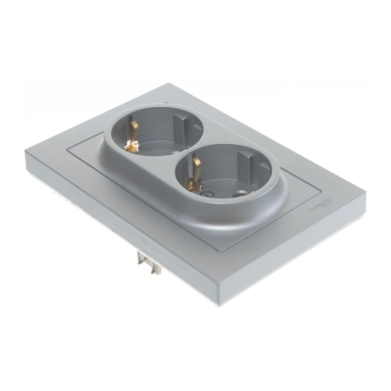 Розетка с/у Atlasdesign ATN000324, 2 гнезда, с/з, алюминий