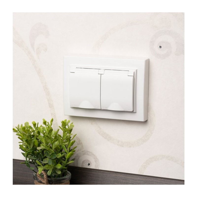 Розетка с/у Минск ERR16-129-200-44, 2 гнезда, с/з, з/ш и крышкой, IP44, белая