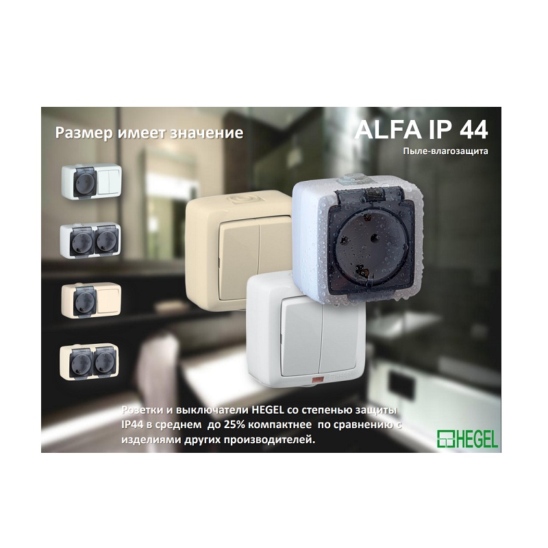 Розетка о/у Alfa РА16-211, 1 гнездо, с/з с крышкой, IP44, белая