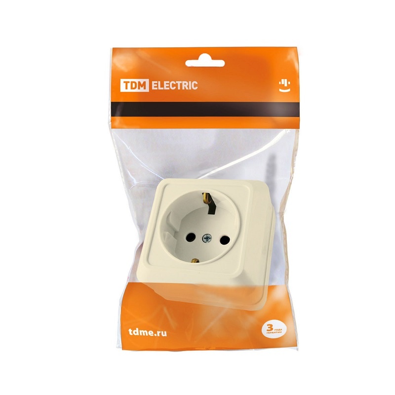 Розетка о/у Ладога SQ1801-0016, 1 гнездо, с/з, слоновая кость