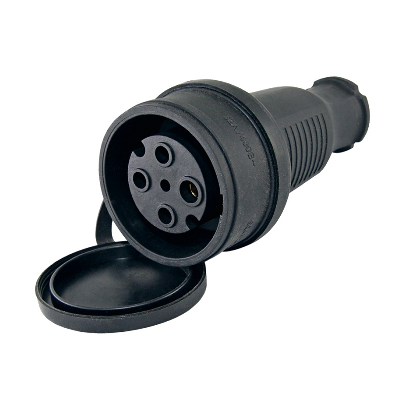 Штепсельное гнездо, 3Р+РЕ, 32А, 380В, IP44, каучук, черное