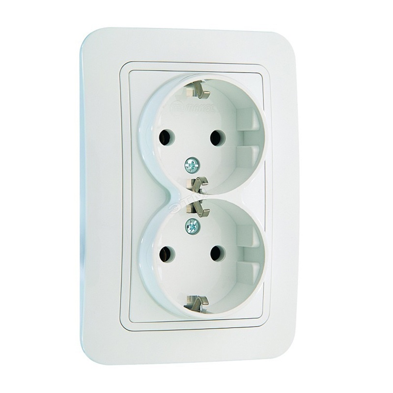 Розетка с/у Mimoza 12082, 2 гнезда, c/з, белая