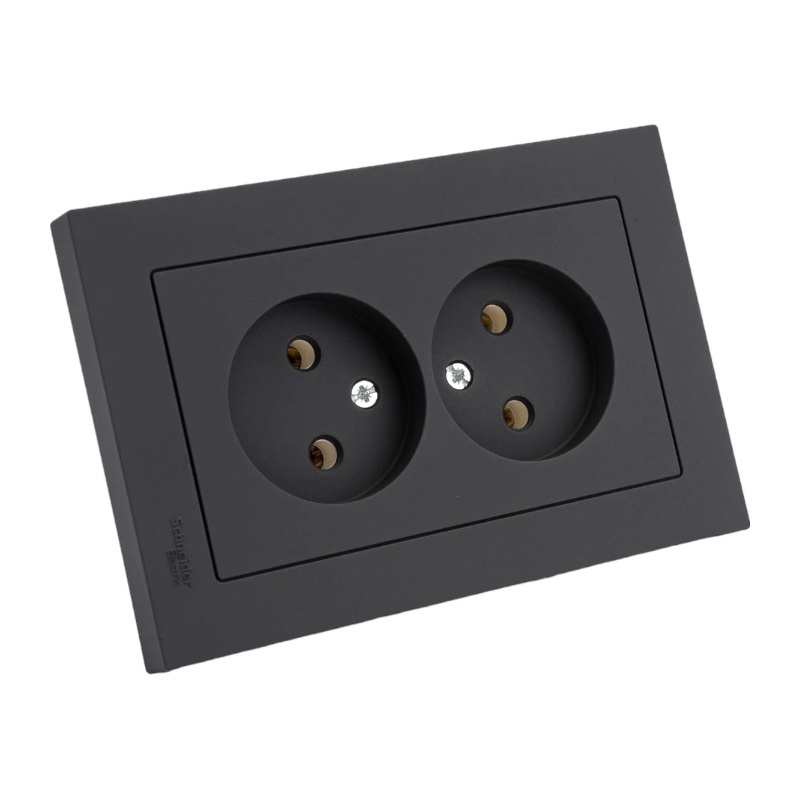 Розетка с/у Atlasdesign ATN001020, 2 гнезда, б/з, карбон