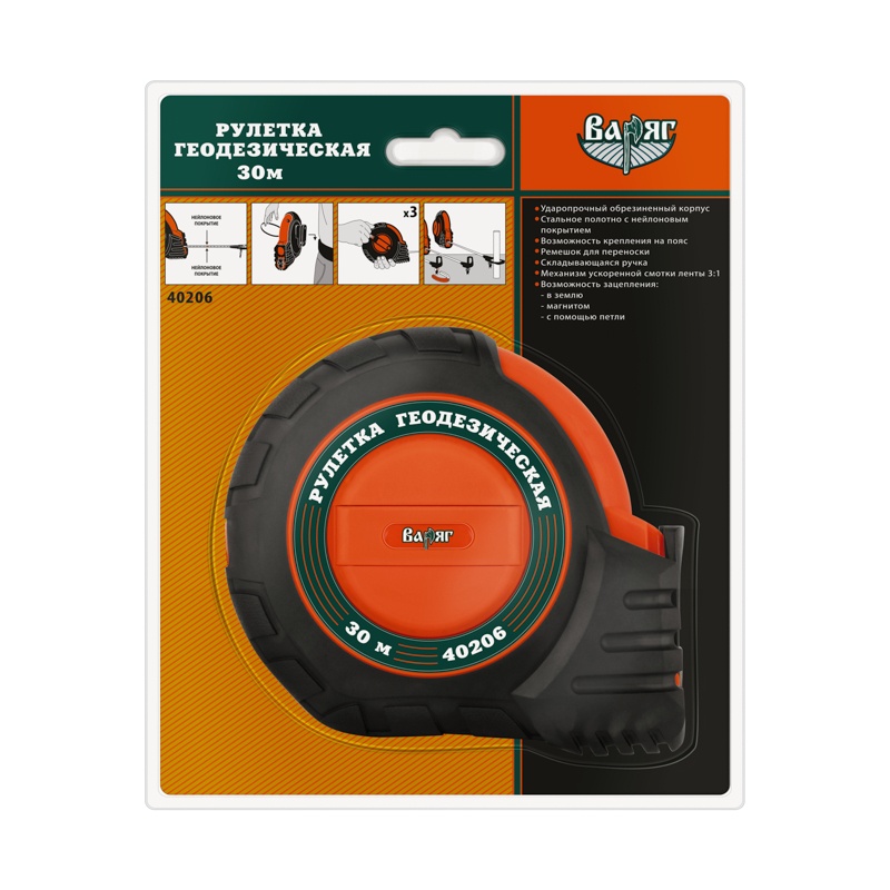 Рулетка Варяг 40206 геодезическая 30 м, ускоренная перемотка