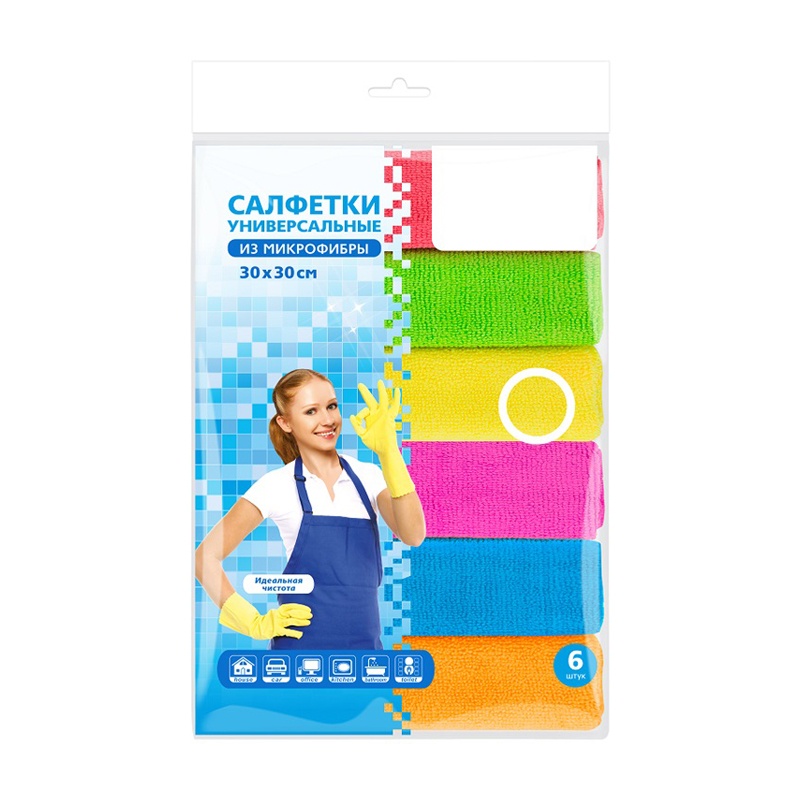 Салфетка для уборки, микрофибра, 300х300 мм (6 шт)
