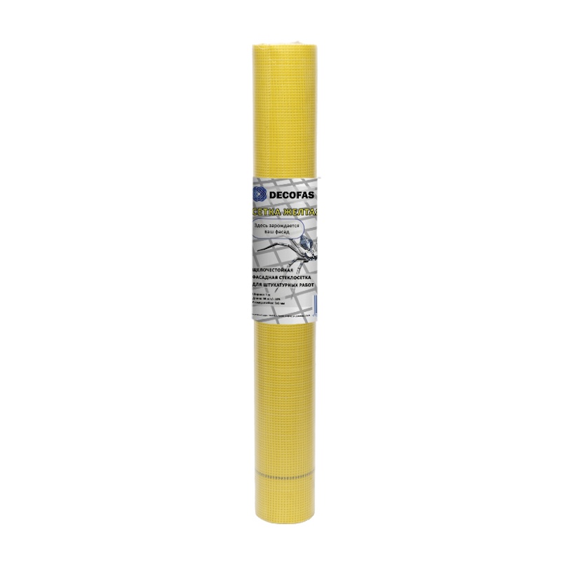 Сетка стеклотканевая для штукатурных работ Decofas Фасад 5x5 (желтая) (1х50м) ± 10% (145гр/м2)