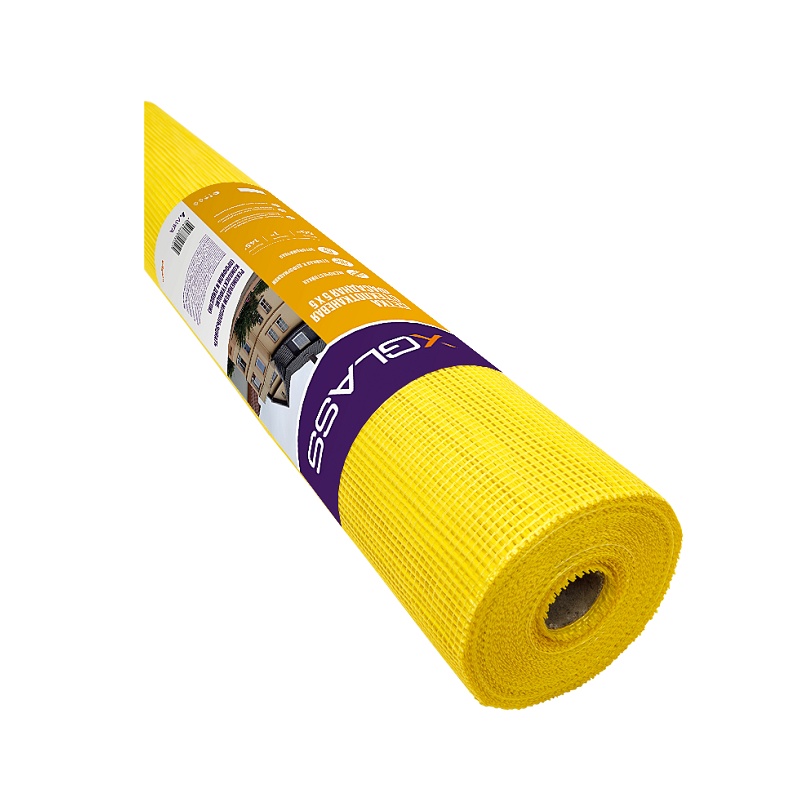 Сетка стеклотканевая фасадная X-Glass 5х5 мм, 1х50 м+/-10%, 145 гр/м2, желтая